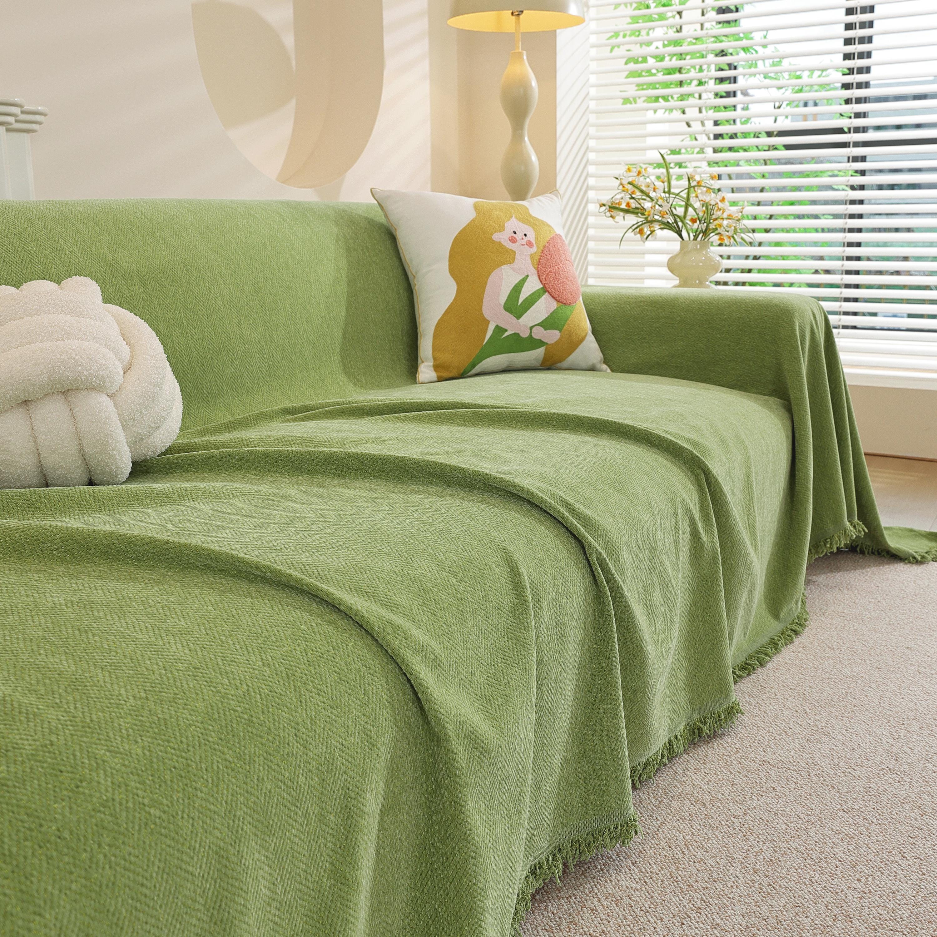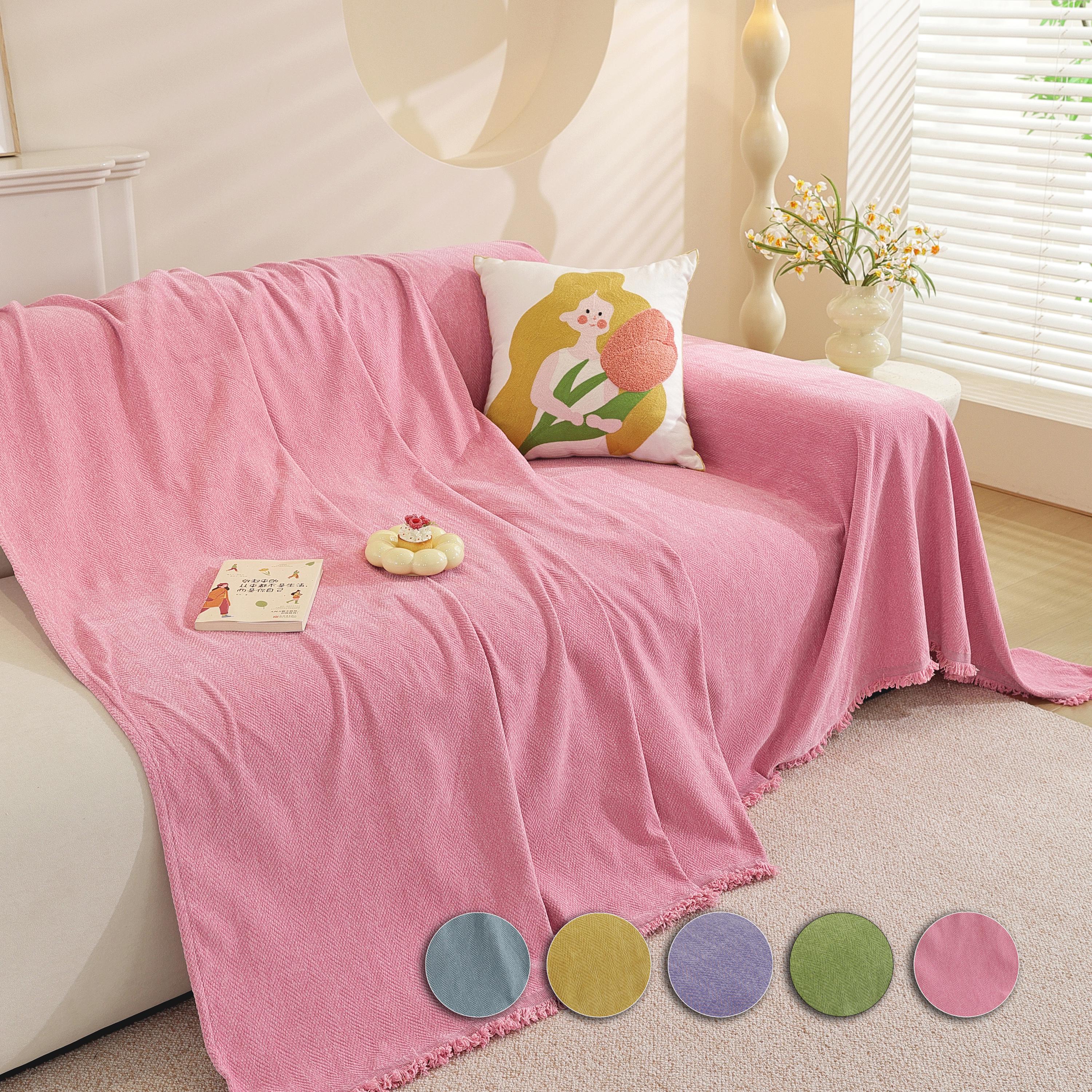 Chenille Sofa Throw Blanket: Custom Length, Pastel Decor, Skin-Friendly