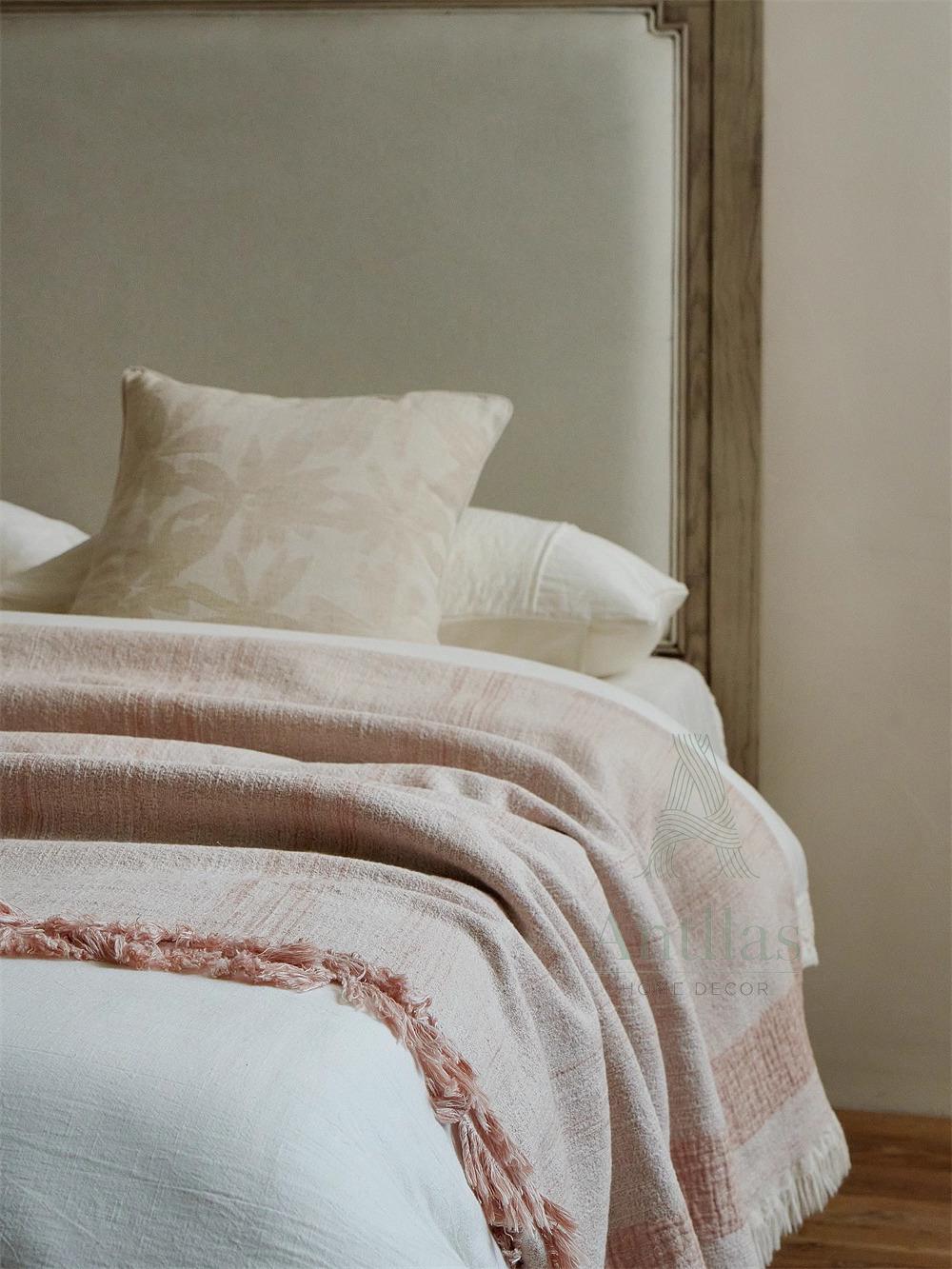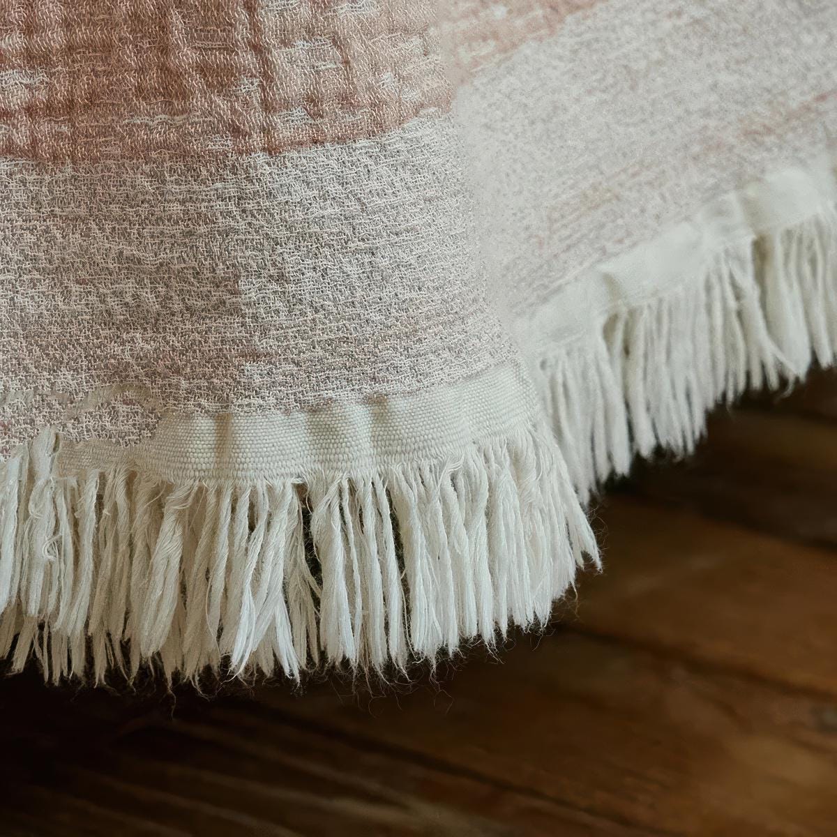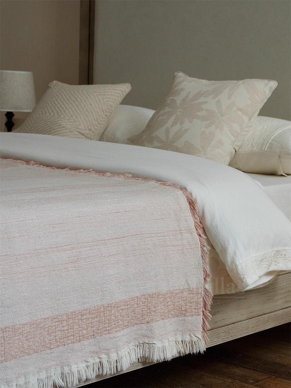 Dusty Pink Jacquard Woven Throw: Linen Cotton Woven Frayed Blanket (245x250cm)