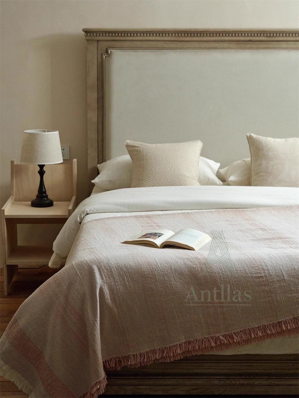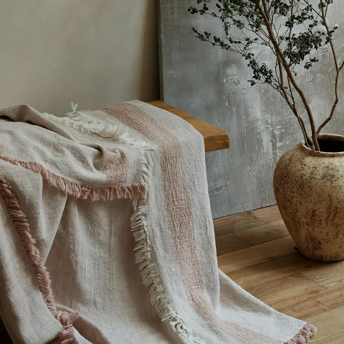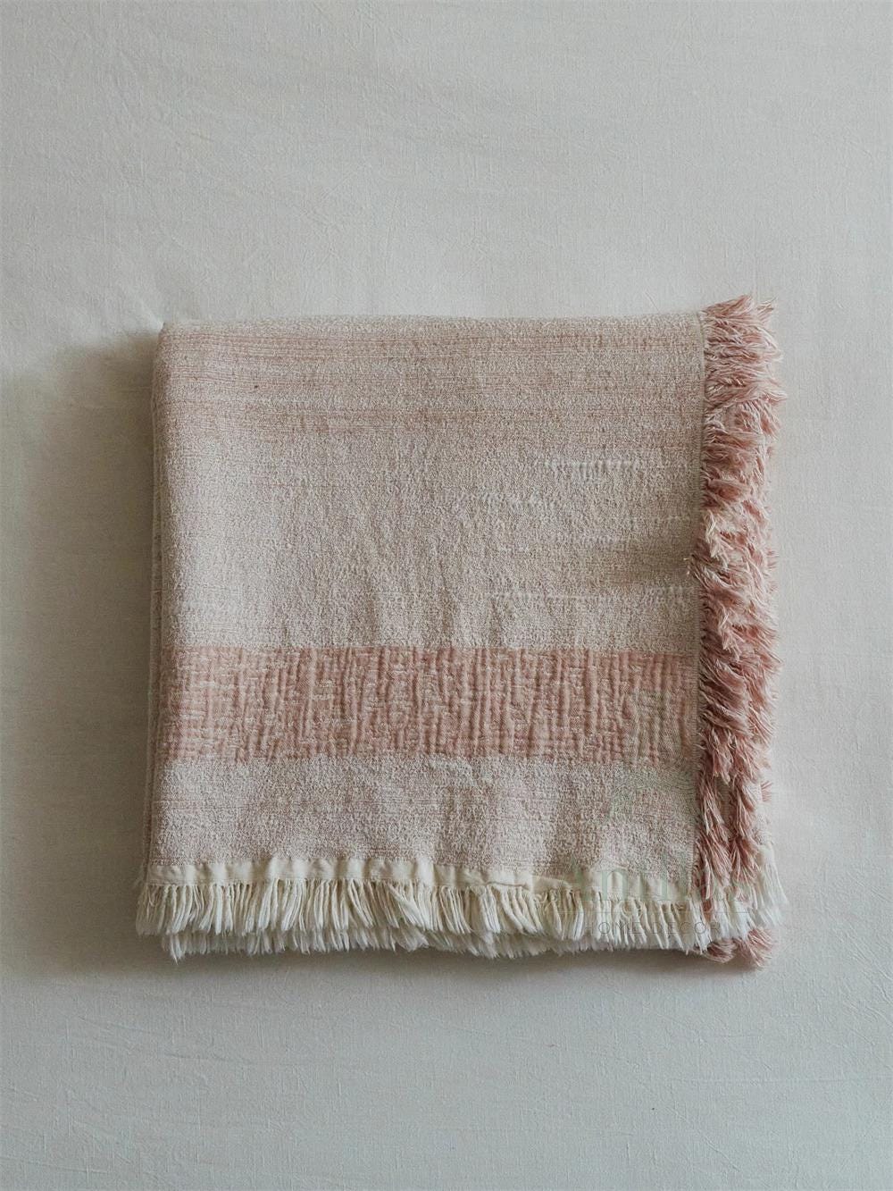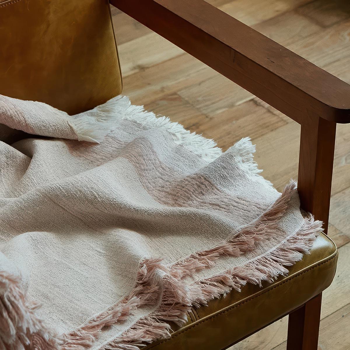 Dusty Pink Jacquard Woven Throw: Linen Cotton Woven Frayed Blanket (245x250cm)