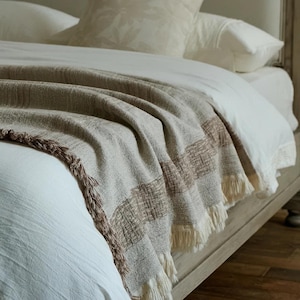Wrap your home in soft elegance and rustic charm with our oversized linen-cotton bedspread. Woven from a premium blend of 80% cotton and 20% linen, this piece brings breathable comfort and timeless texture to any space—whether used as a bed cover, couch throw, or seasonal layer.