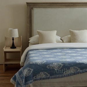 Oversized Linen Cotton Bed Throw: Jacquard Woven Frayed Blanket (245x250cm)