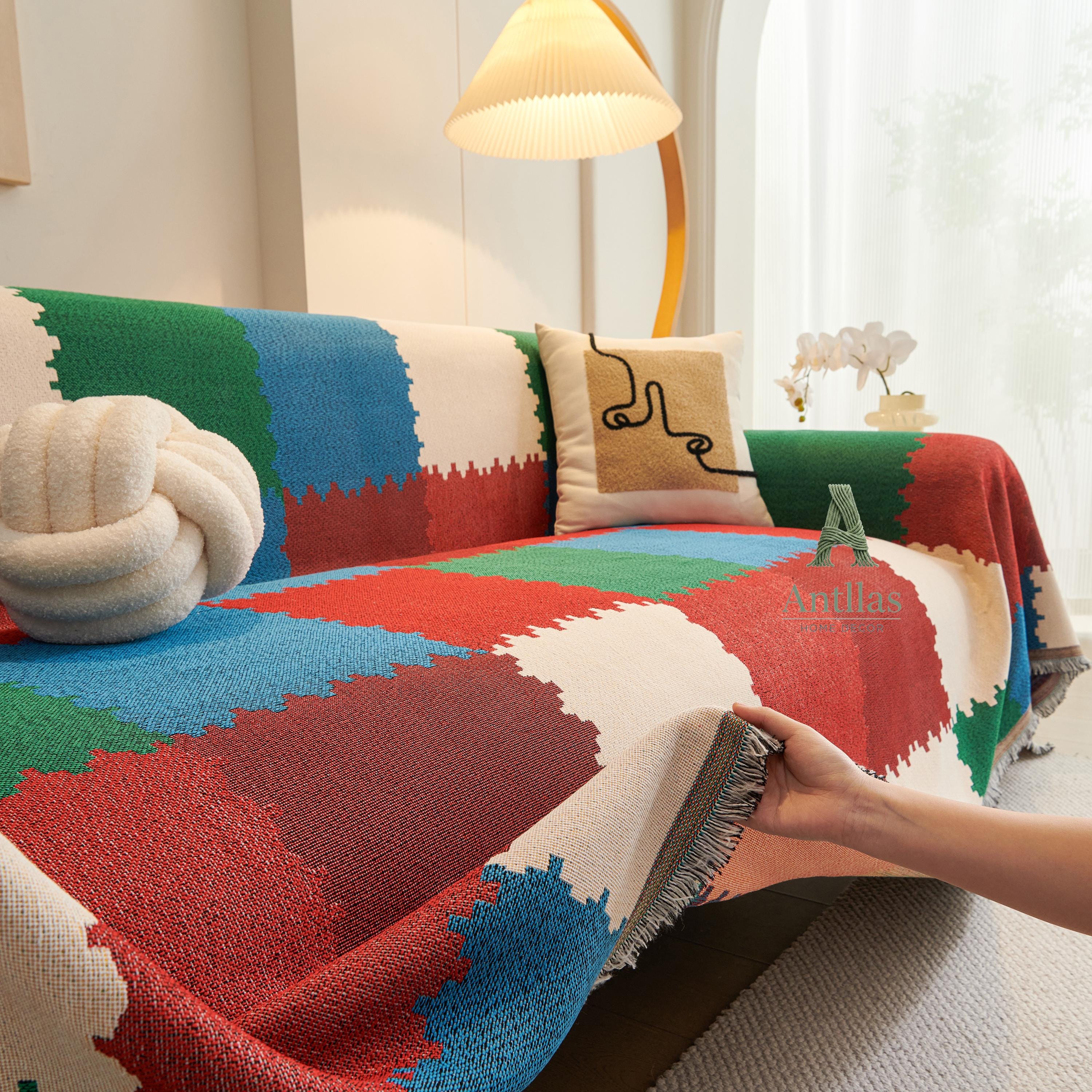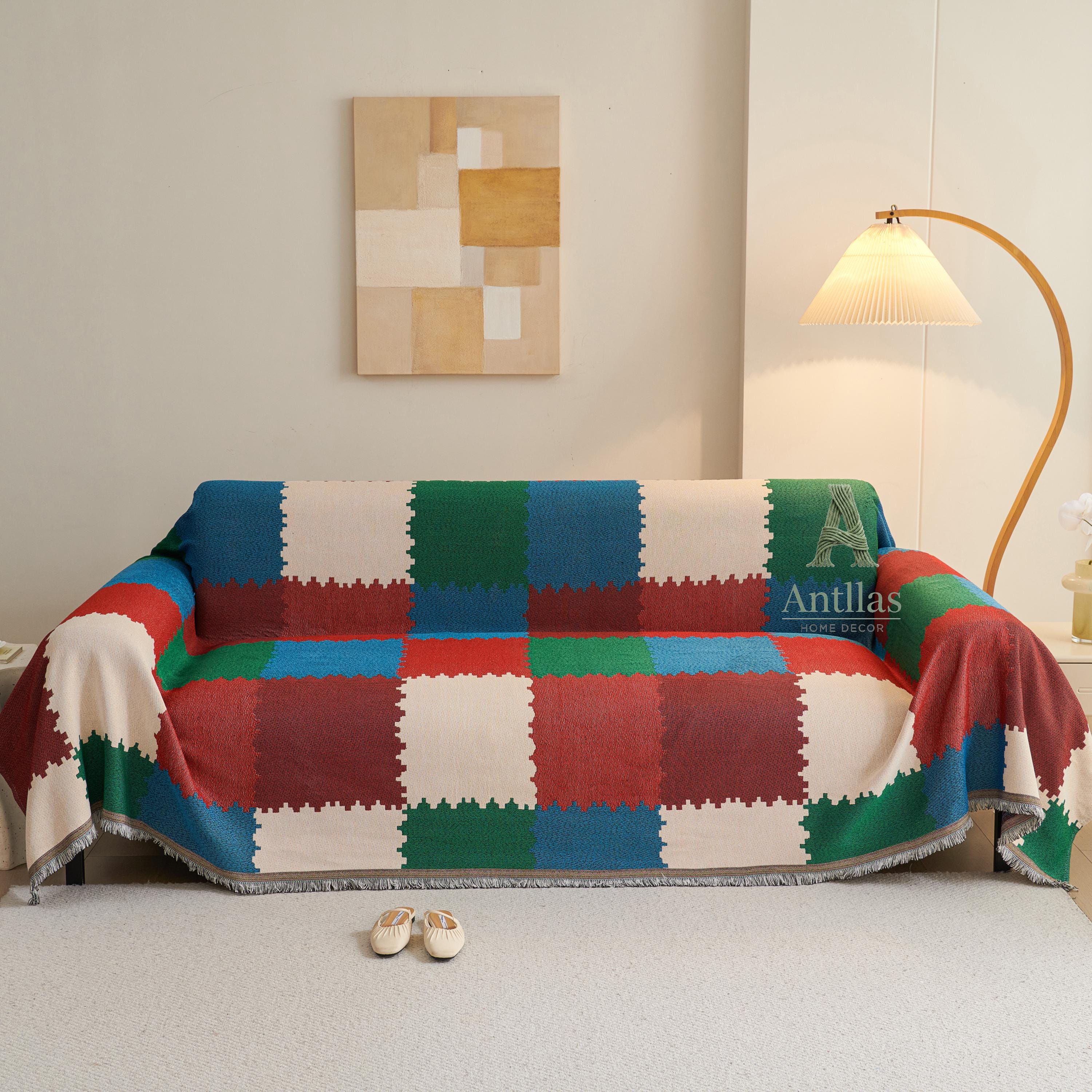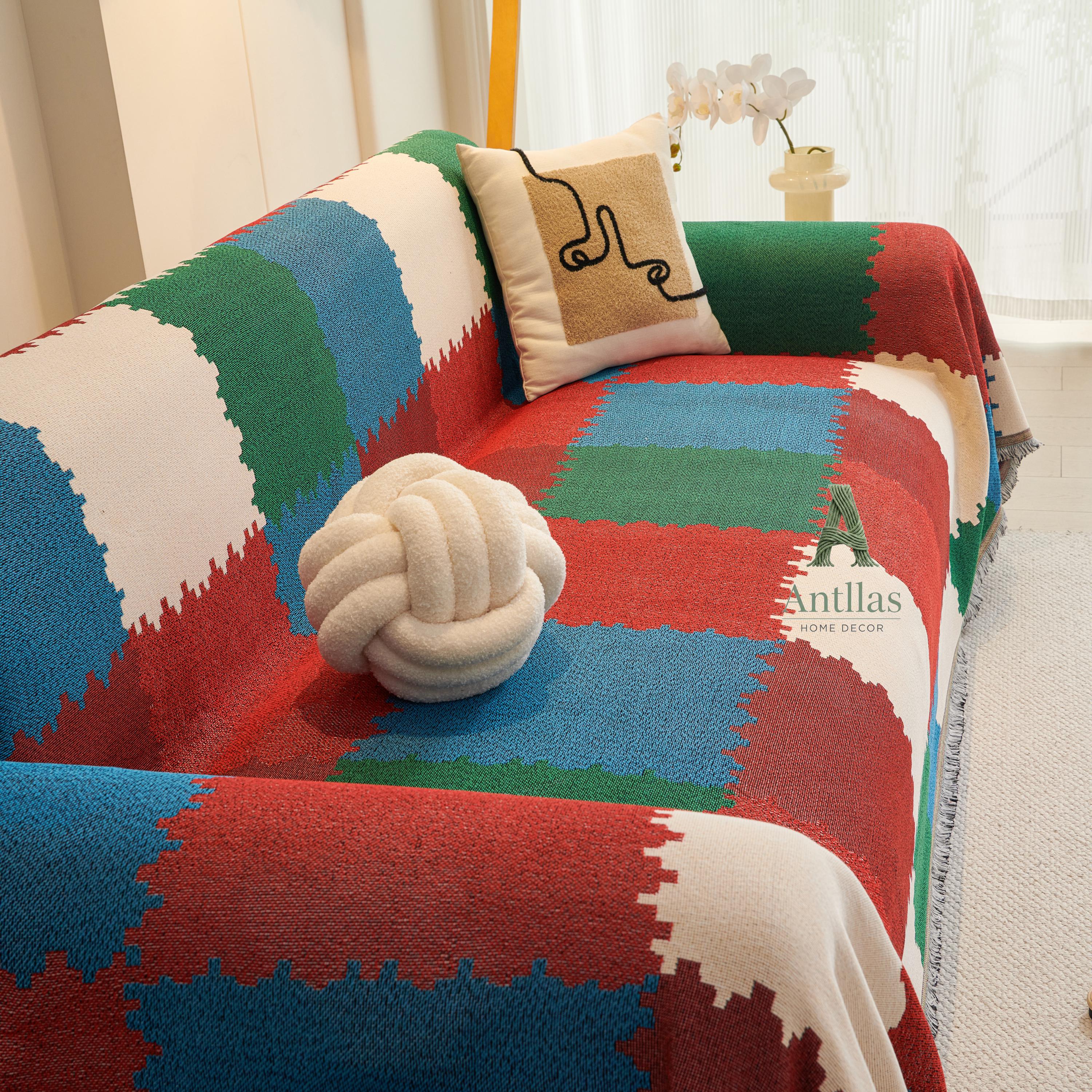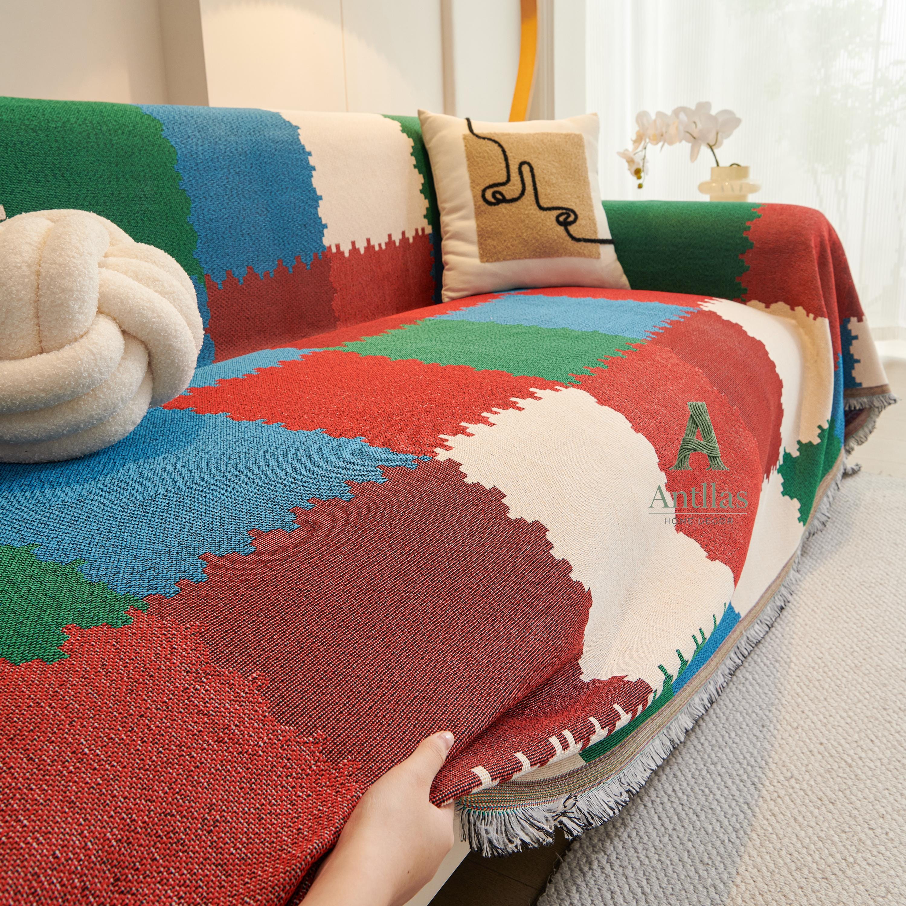 Introducing our Chenille Geometric Sofa Cover, a versatile piece designed to breathe new life into your furniture. Woven with the diligence of an ant building its nest, this throw features a stunning checkerboard color-block design in deep reds, emerald greens, and calming blues.