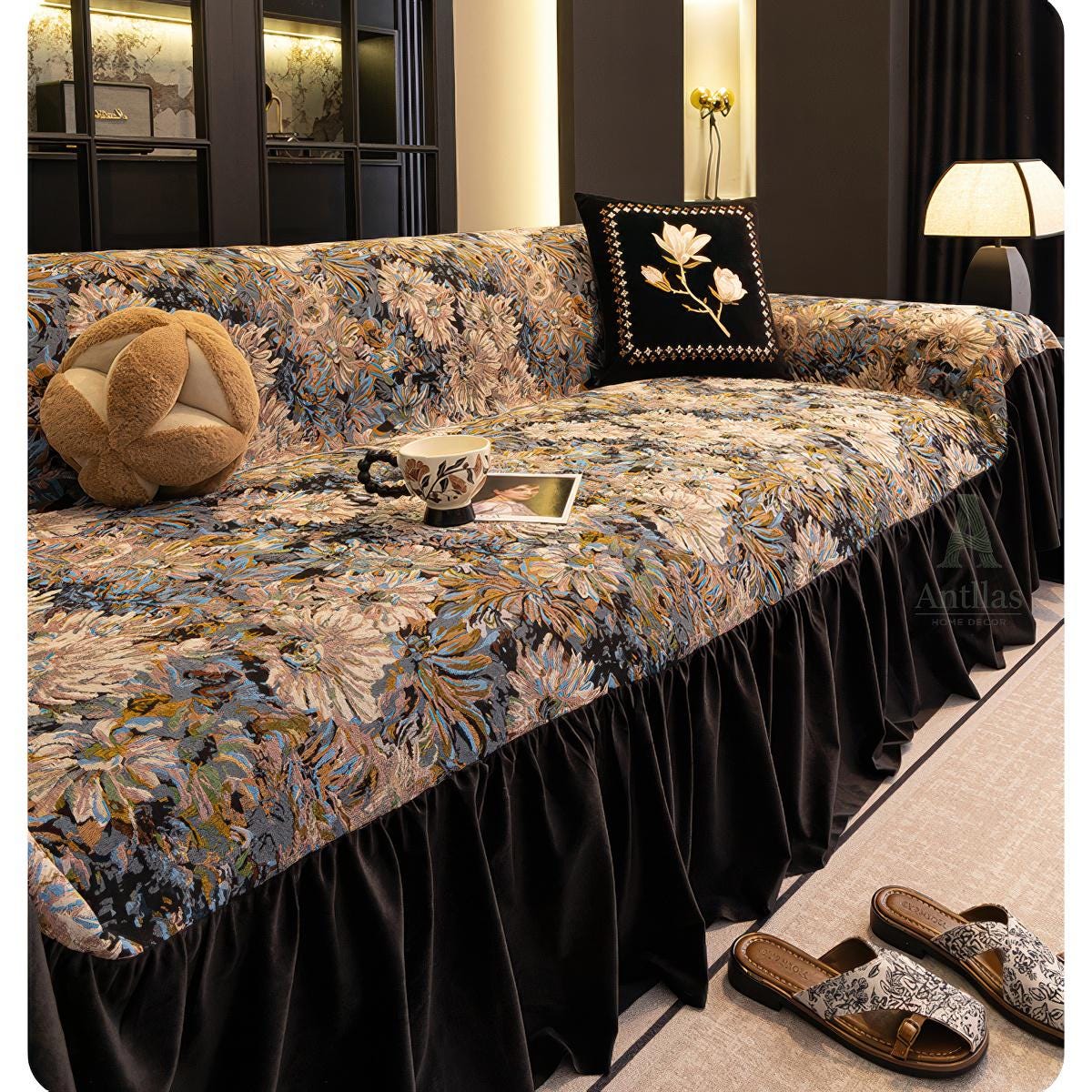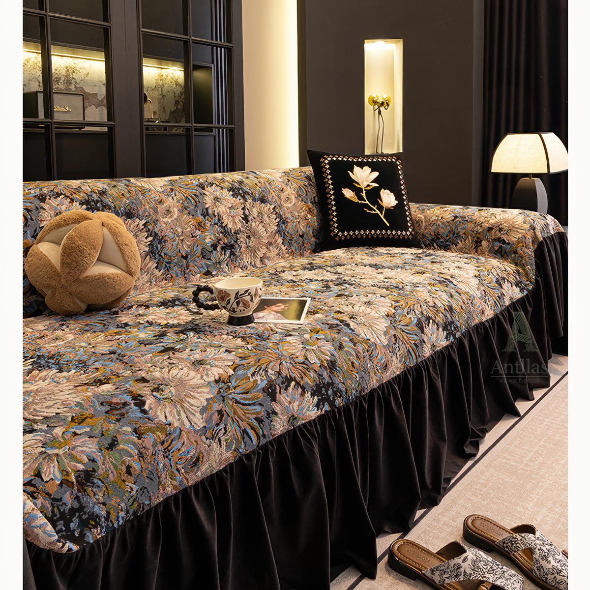 🖤 Black Velvet Ruffle: The solid black ruffled hem provides a bold, sophisticated contrast that elevates your sofa to a statement piece.