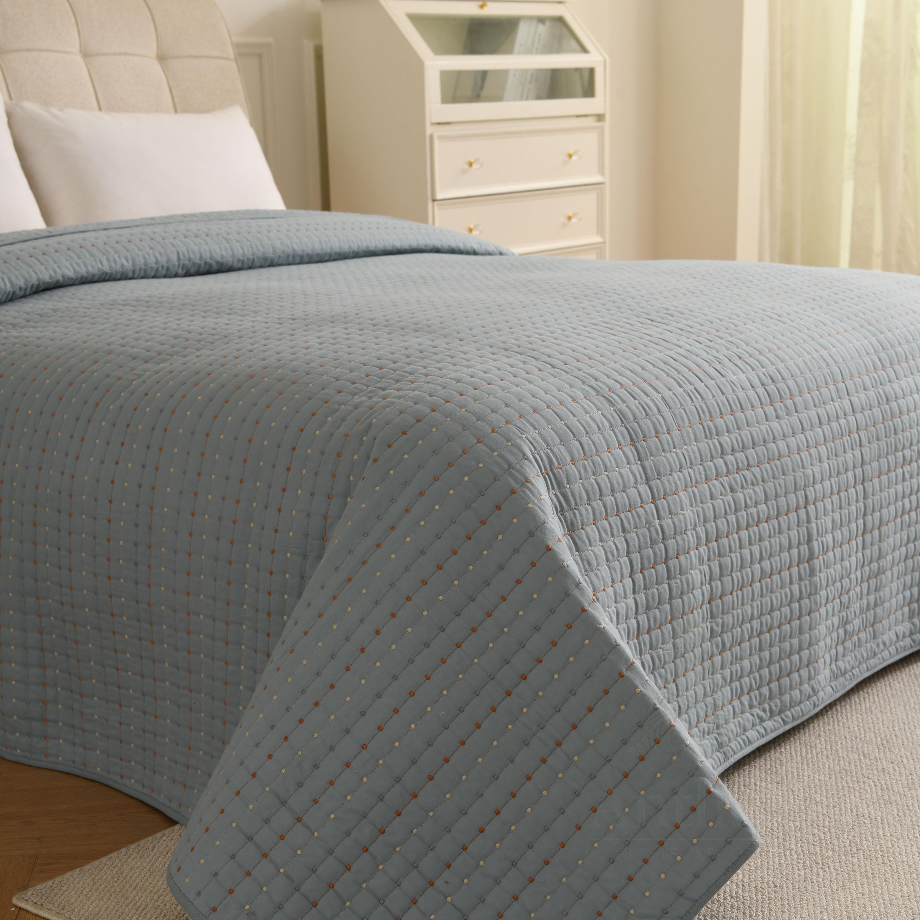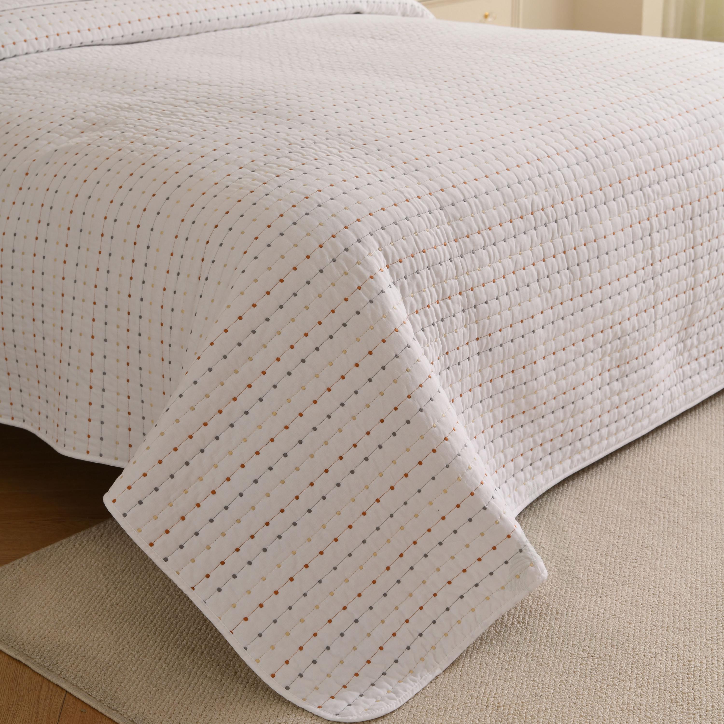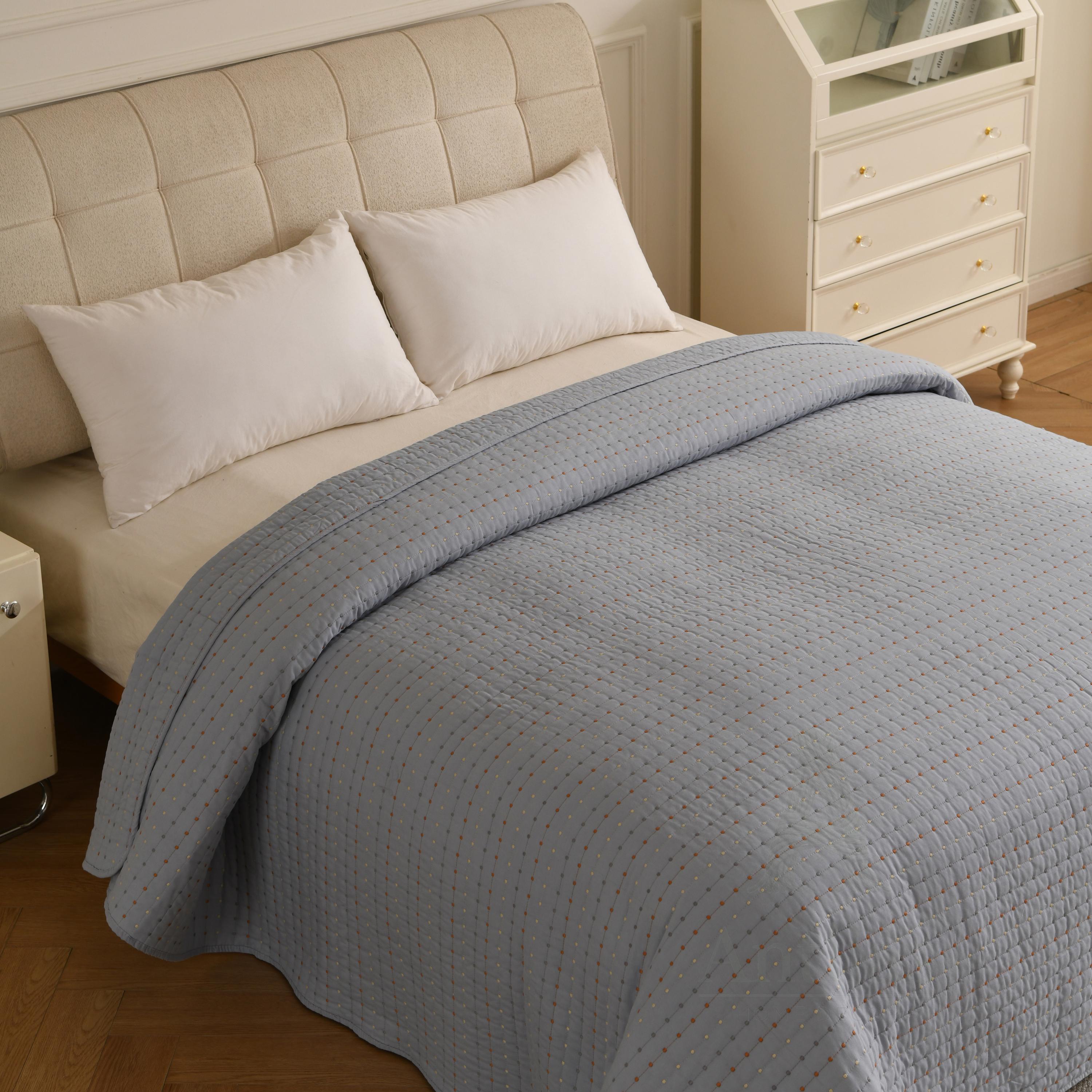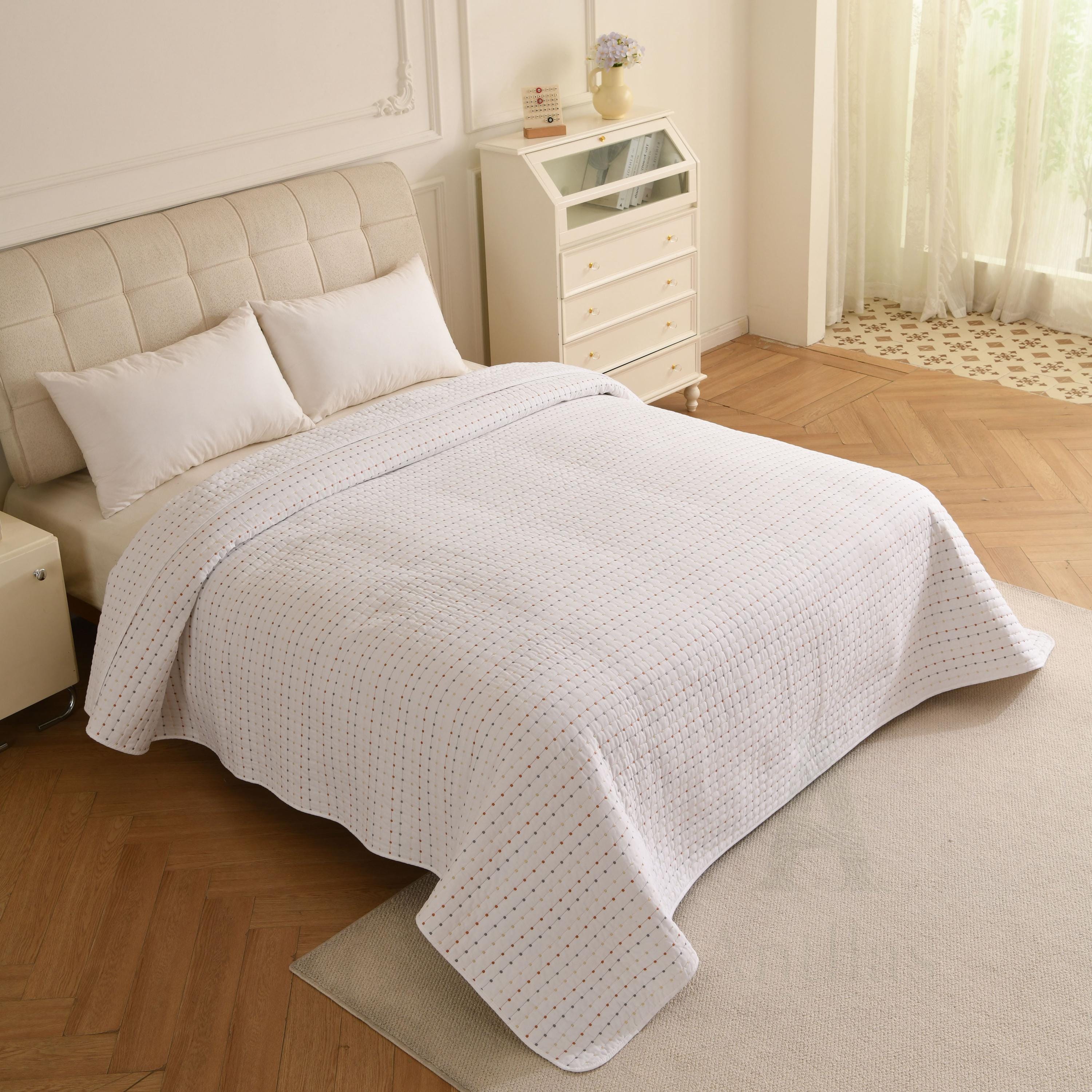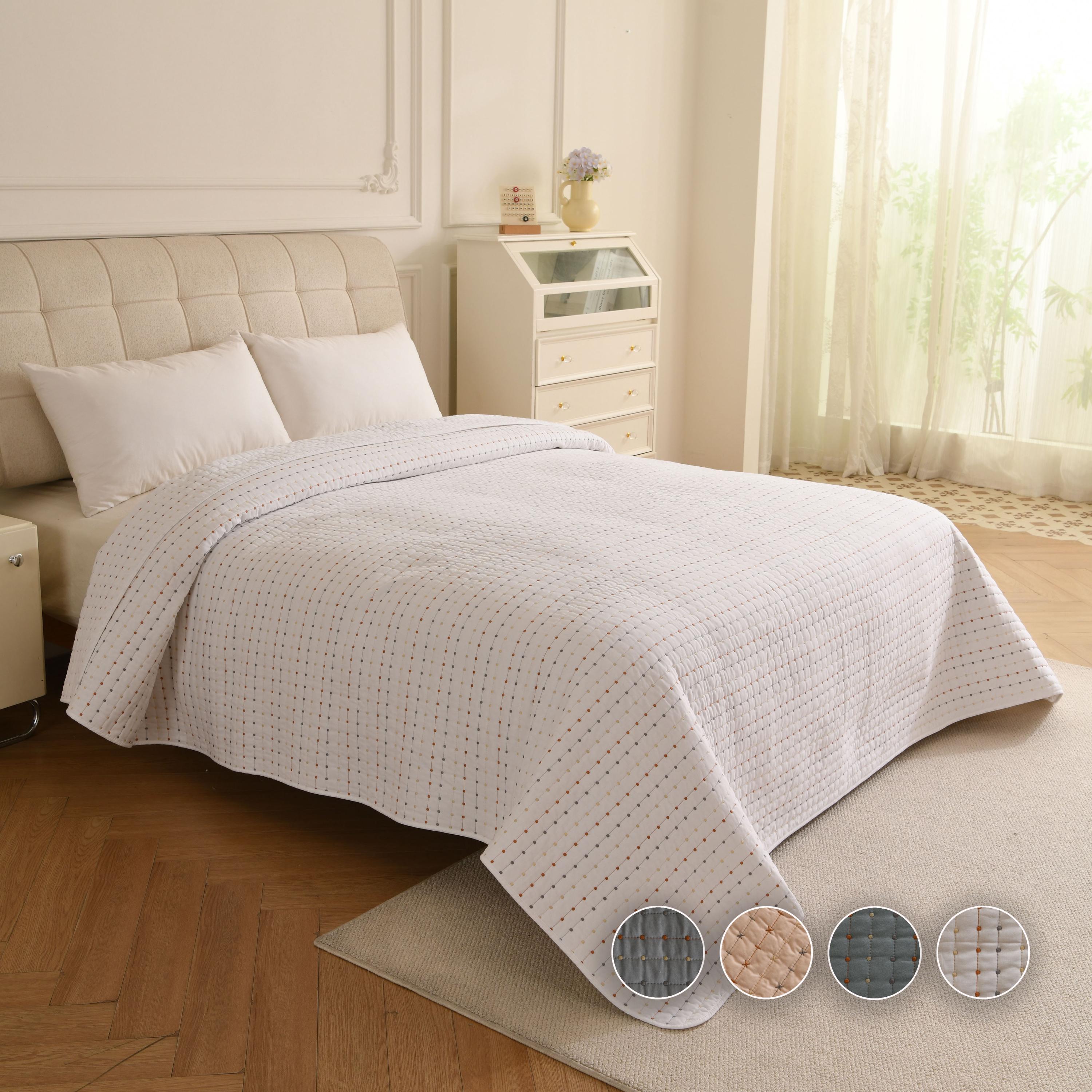Featuring a unique "pick stitch" design with subtle colorful dots, this lightweight coverlet is perfect for layering in winter or using as a standalone quilt in summer. Available in 4 soothing colors to match any decor.