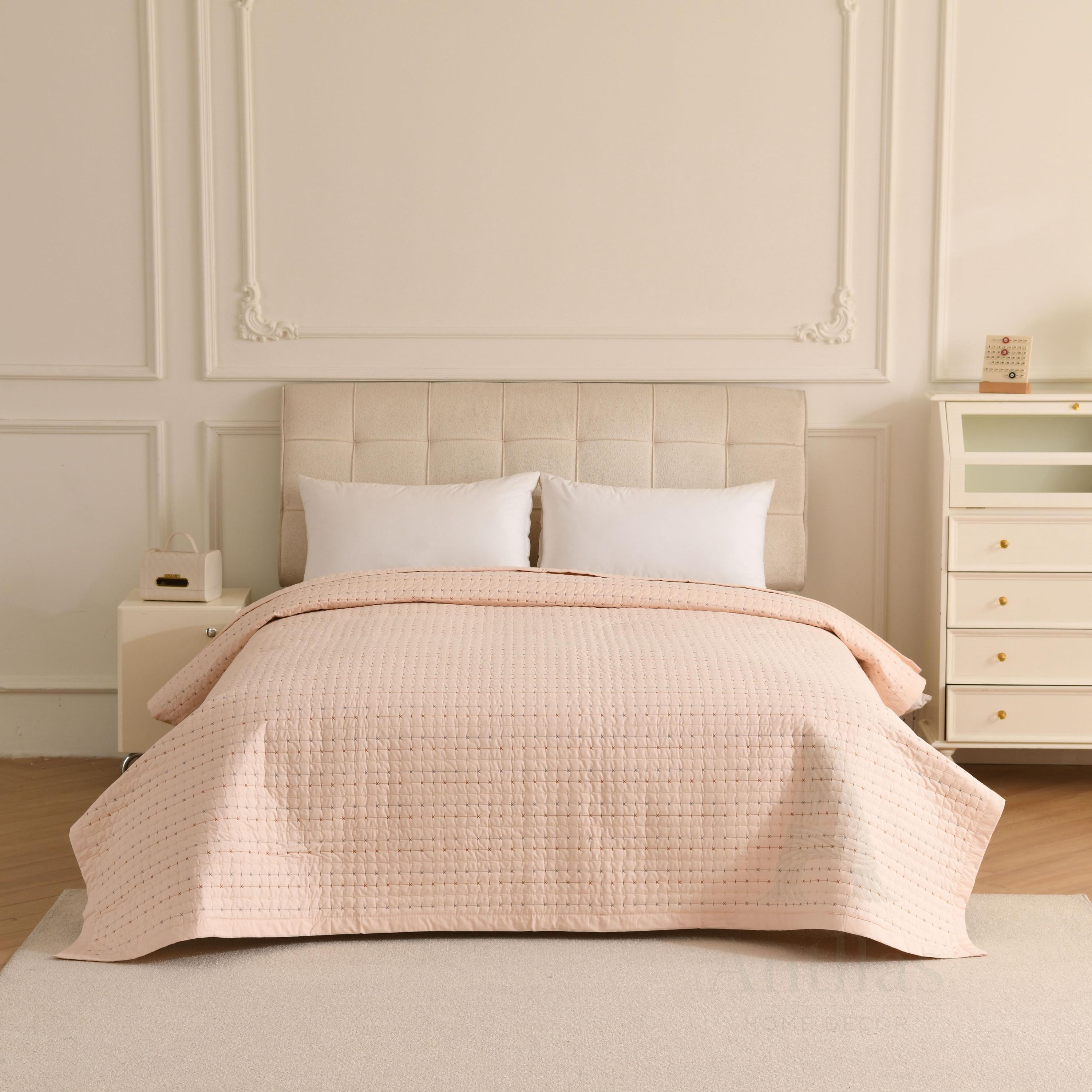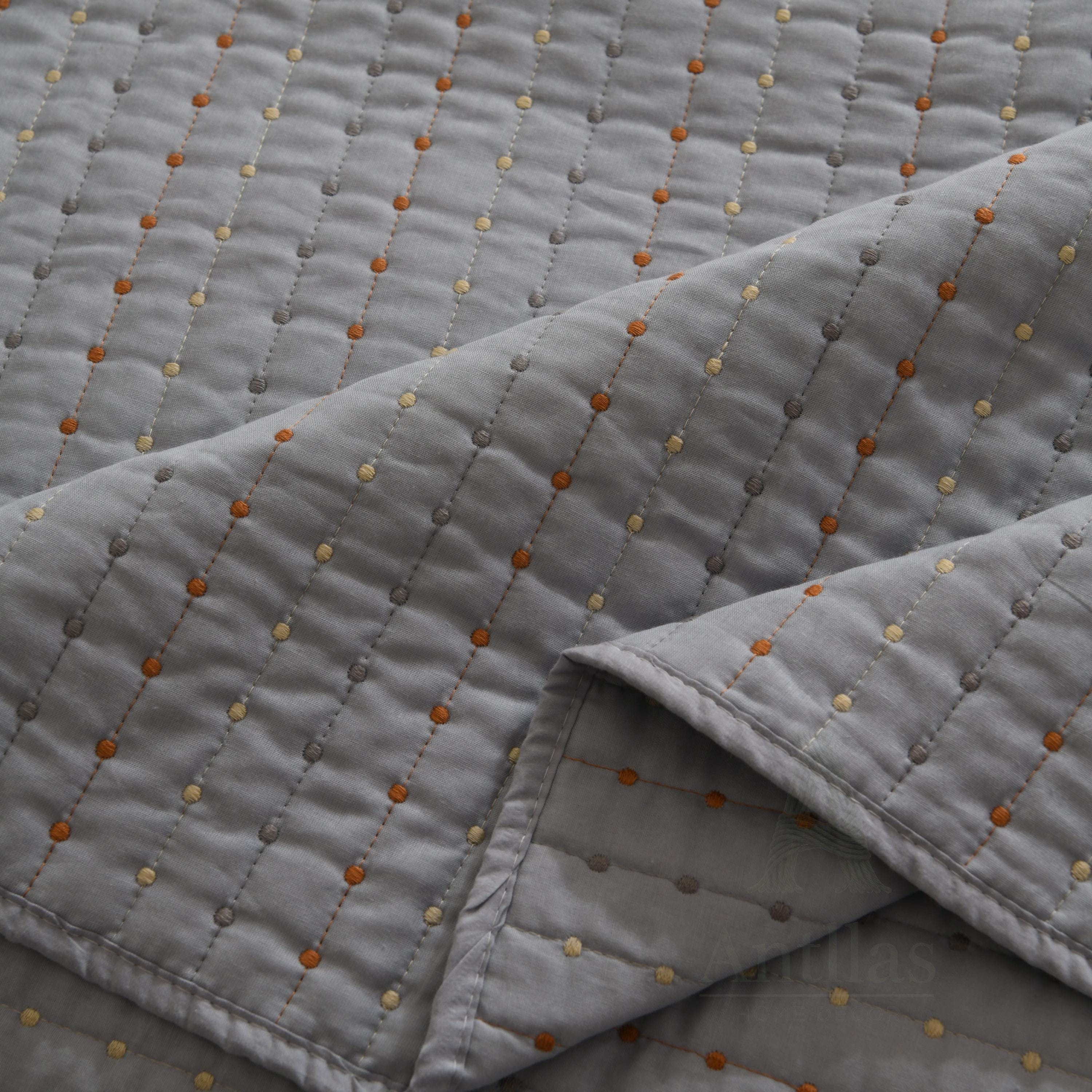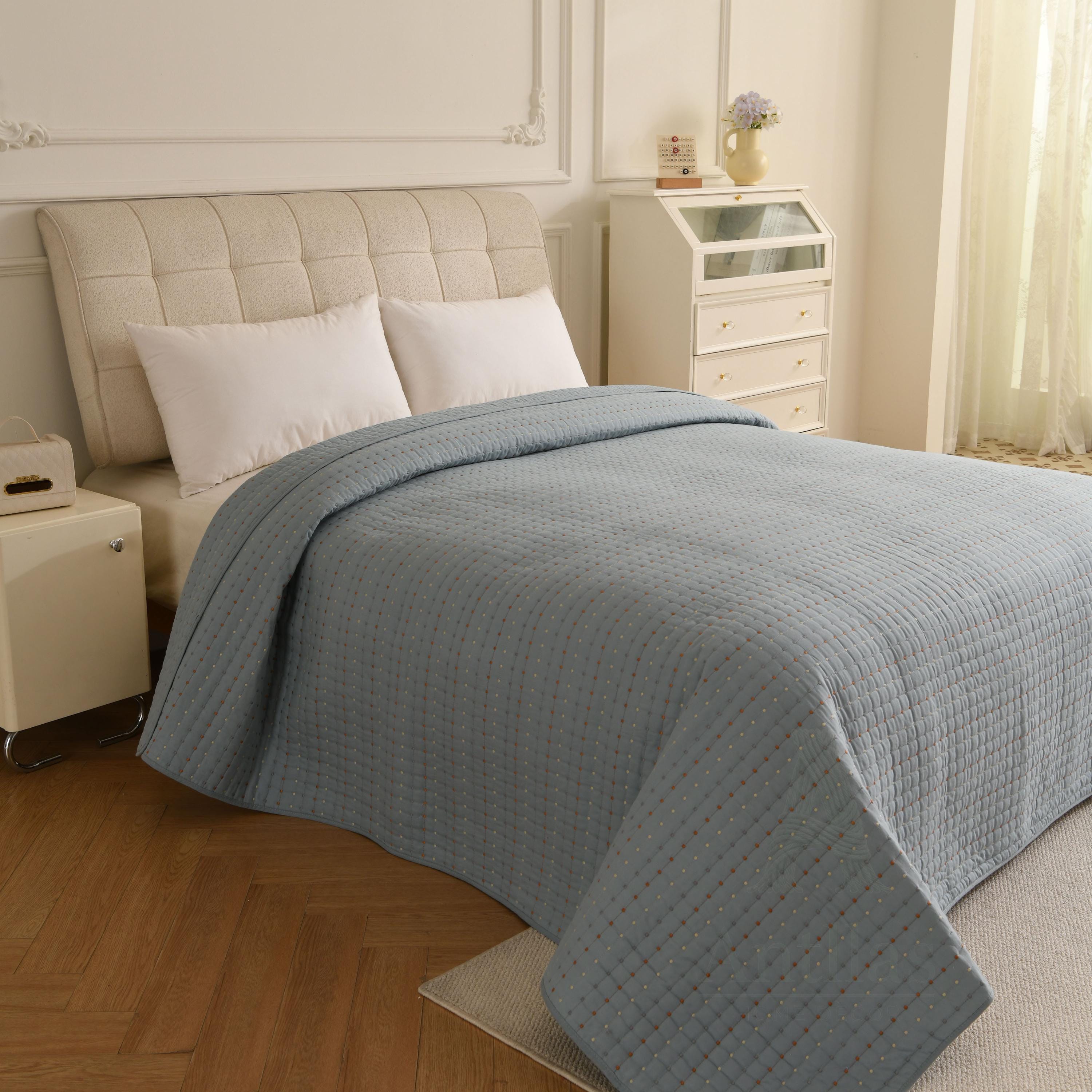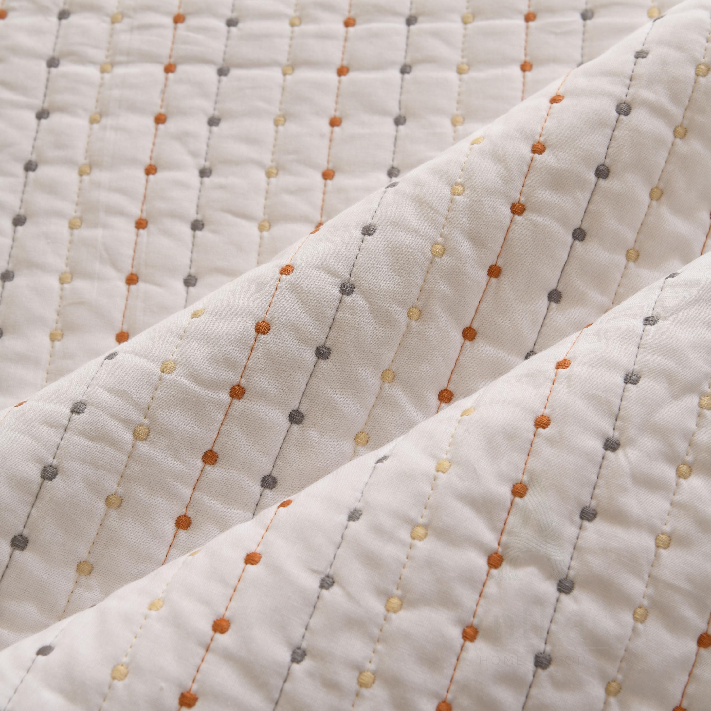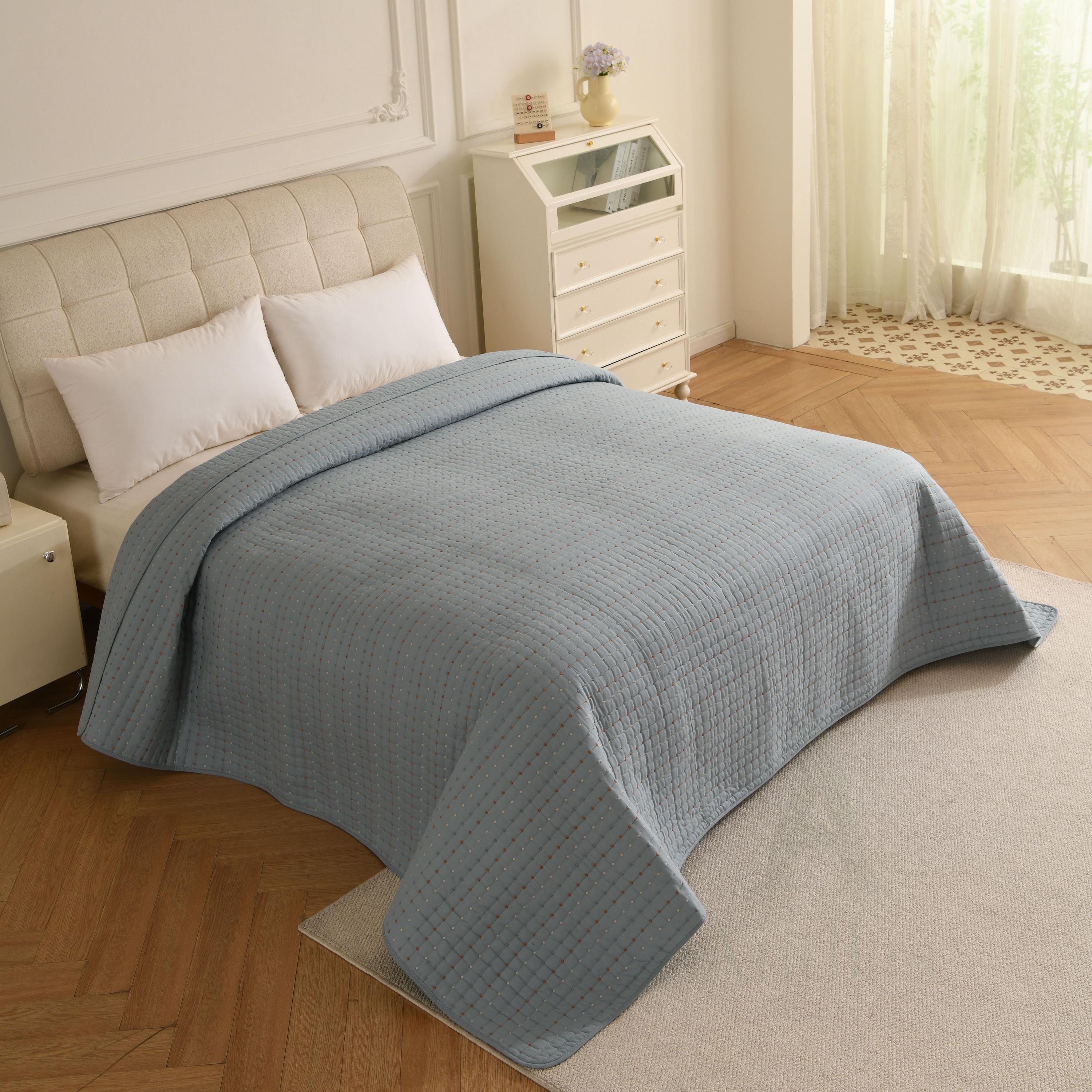 Featuring a unique "pick stitch" design with subtle colorful dots, this lightweight coverlet is perfect for layering in winter or using as a standalone quilt in summer. Available in 4 soothing colors to match any decor.