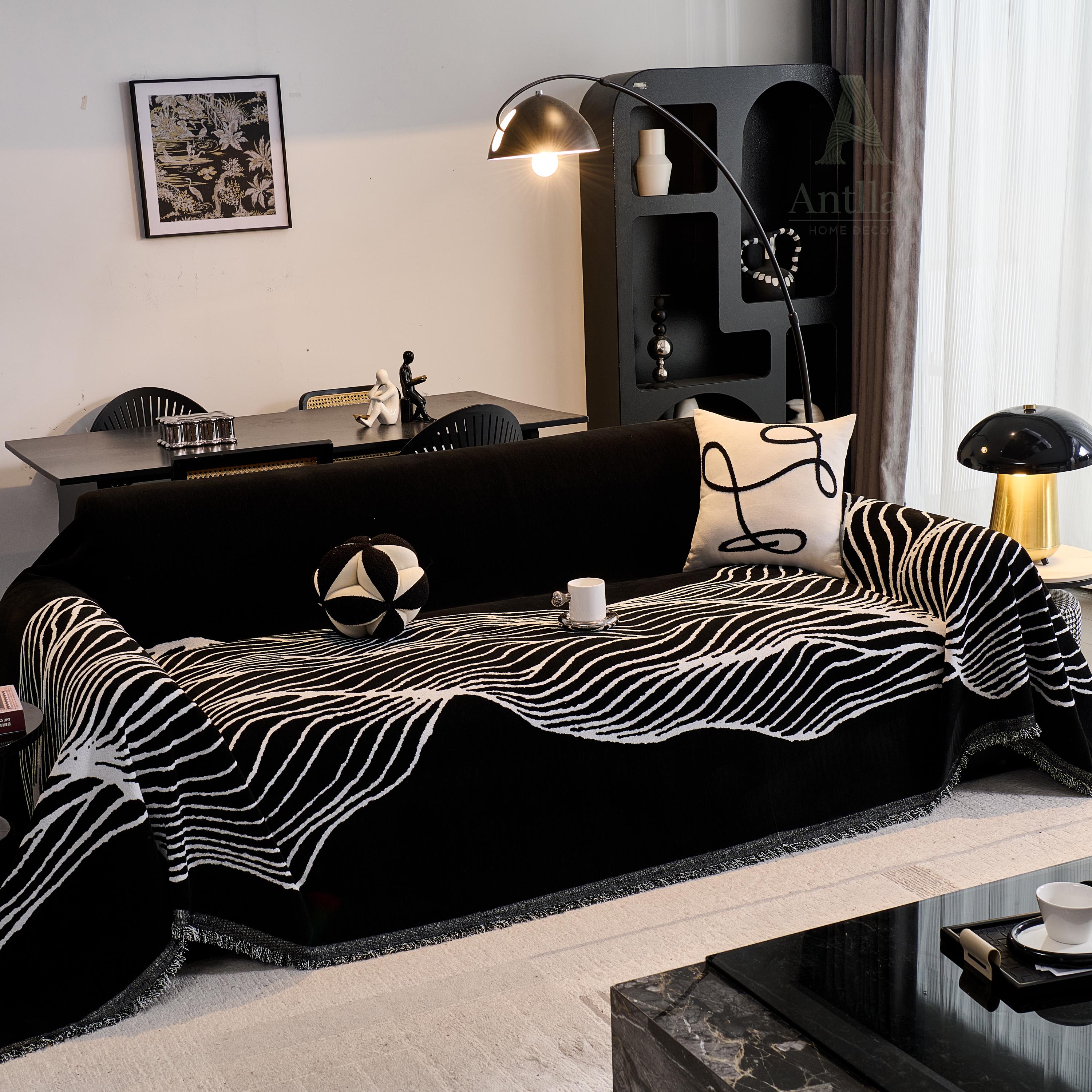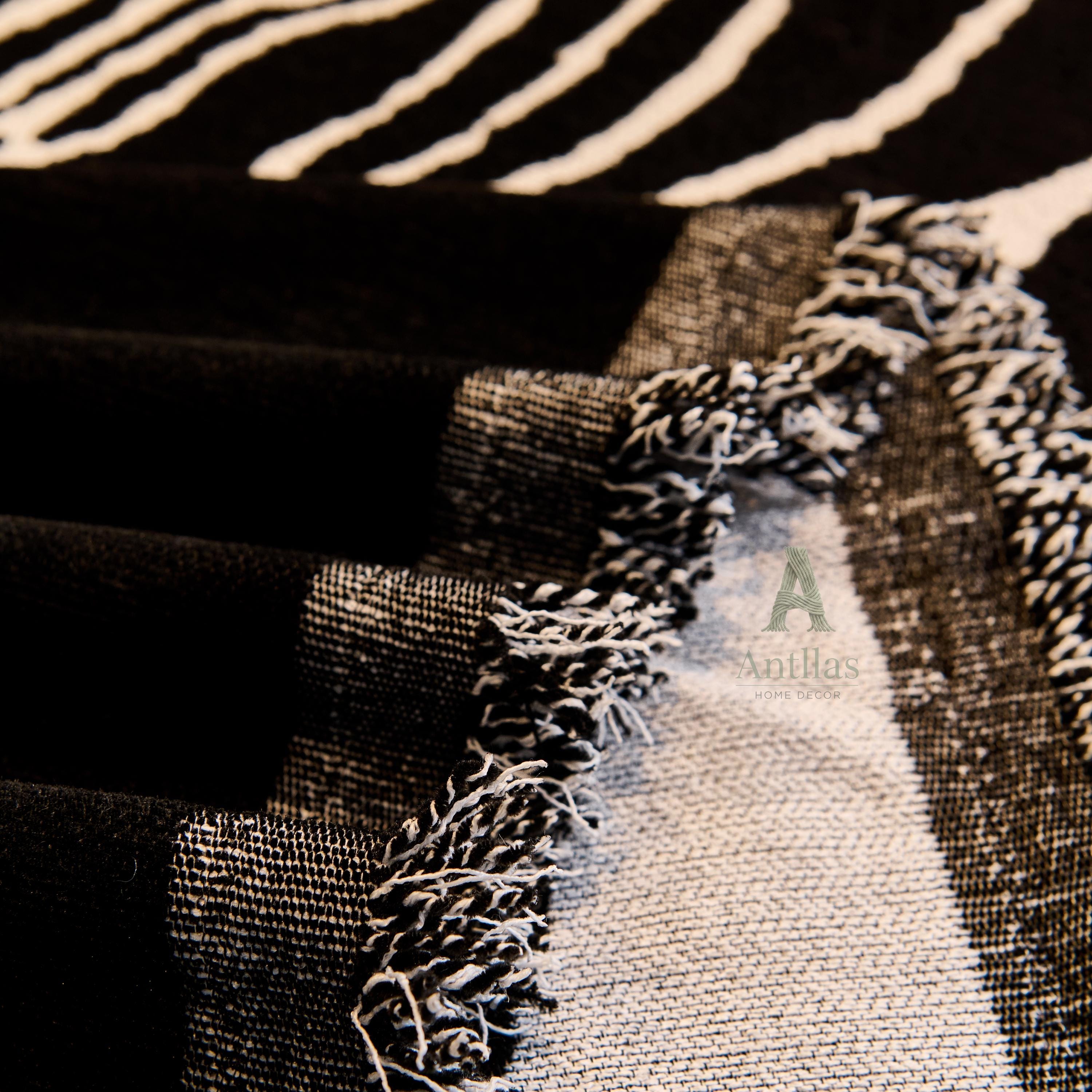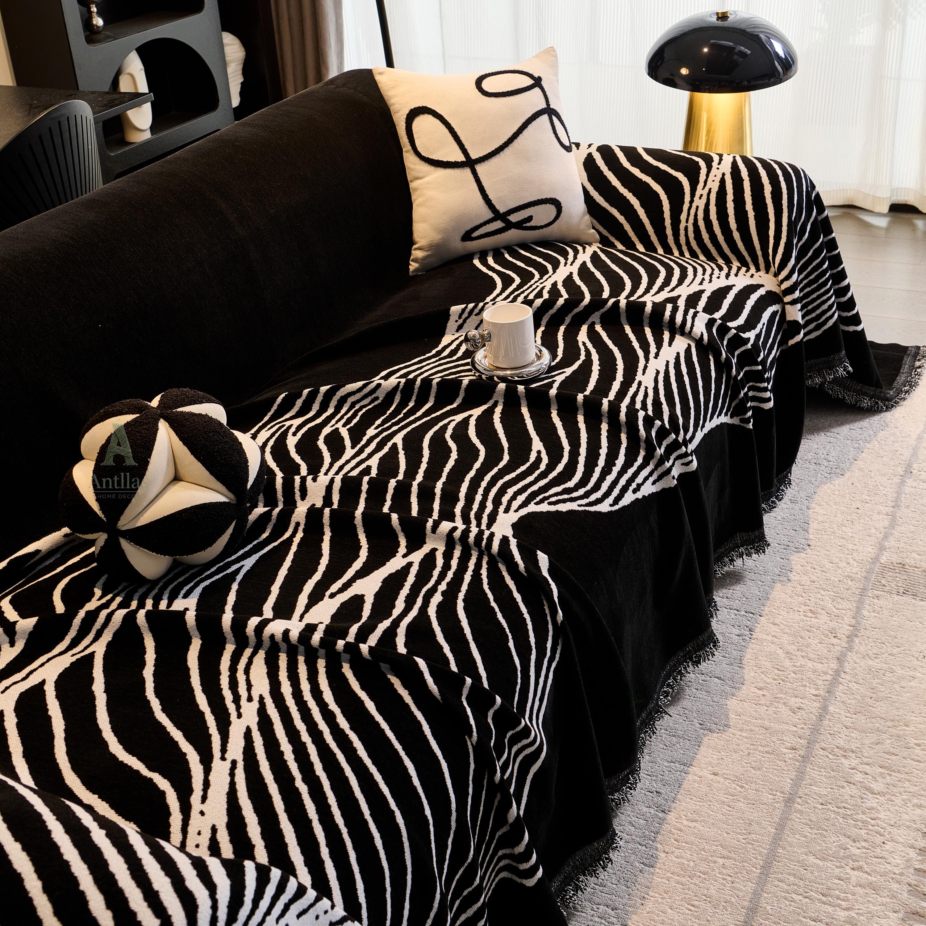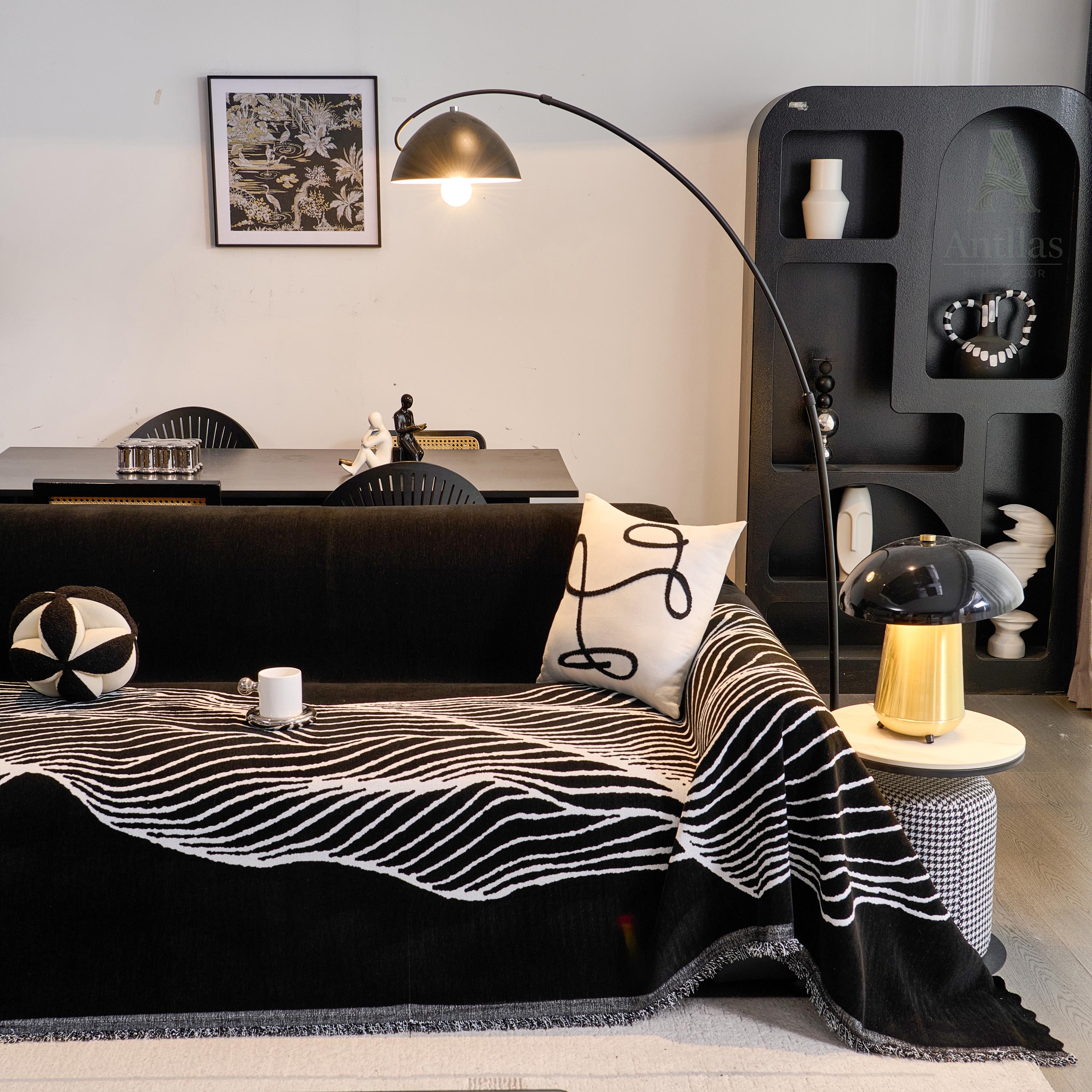 The best part? It features a fully reversible design! One side showcases a striking black background with white lines, while the reverse side offers a bright white background with black lines. You get two completely different modern looks in one blanket. Finished with delicate fringe edges, it adds a touch of bohemian elegance to any space. The fabric is incredibly skin-friendly and anti-pilling, ensuring long-lasting comfort.