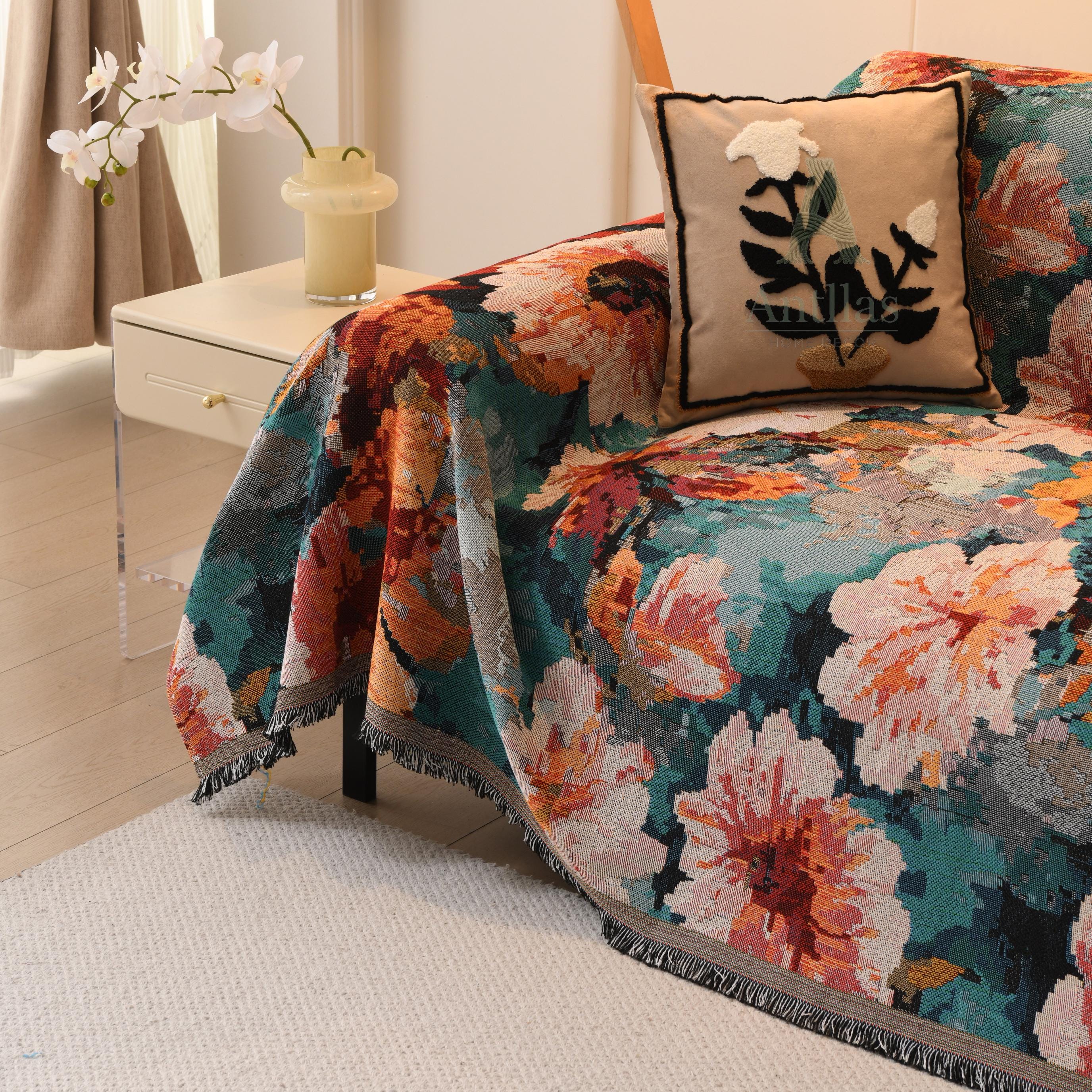 ⚡️ Cozy, Textured & Vibrant: Crafted from high-quality, breathable woven fabric, this throw delivers a rich, tapestry-like tactile experience. It is perfectly weighted, anti-pilling, and designed to infuse your room with romantic, colorful energy while providing long-lasting comfort.